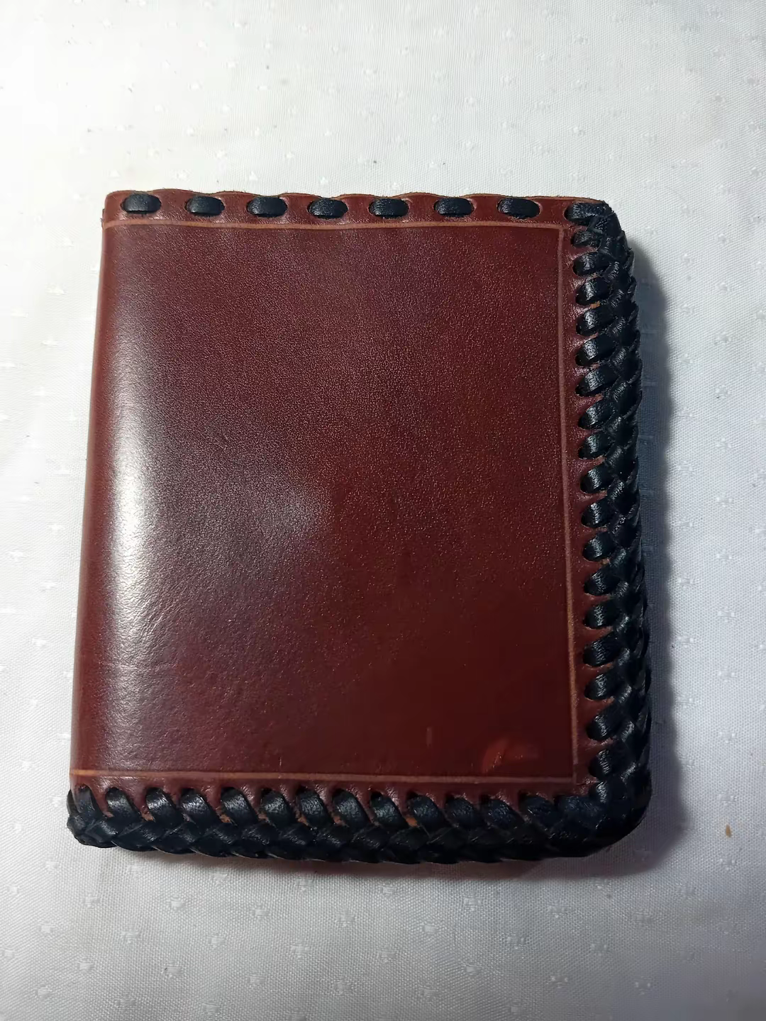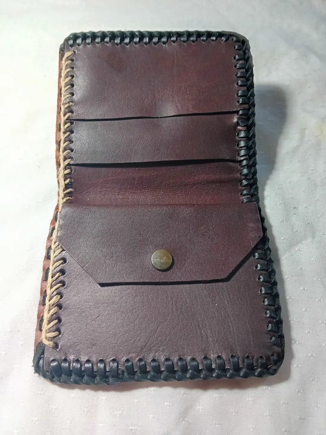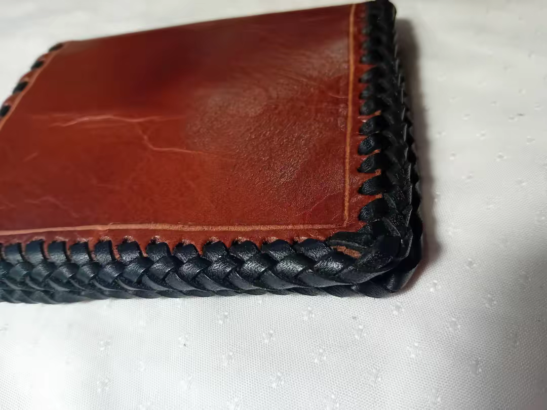 Bonita , práctica y elegante, está cartera billetera cosida a mano con tireta negra , en su interior ,tiene los precios bolsillos para tarjetas y monedero con cierre de clip. Un regalo perfecto para amantes de la artesanía.