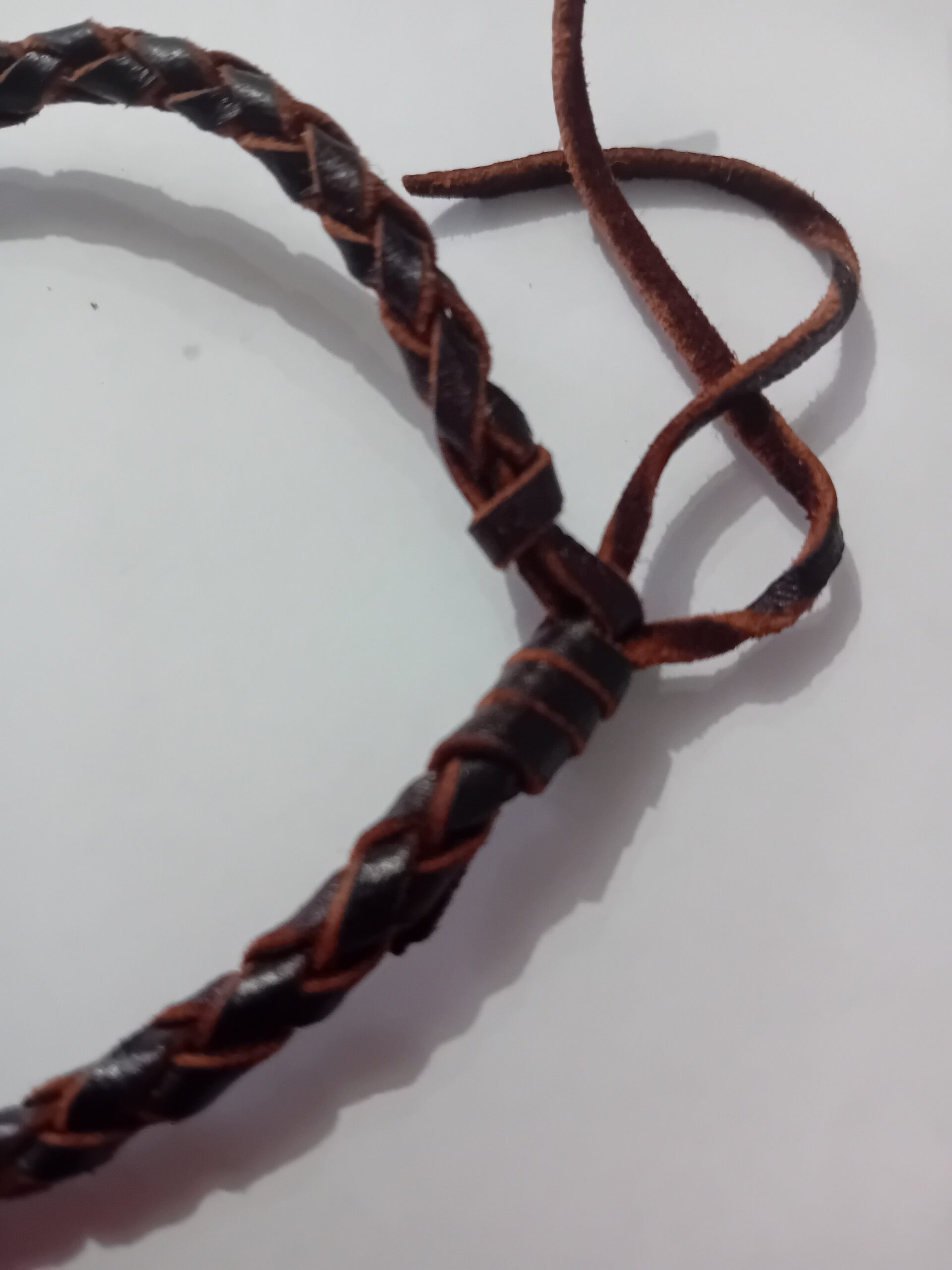 Trenza larga para el cuello , de cuero de cabra es fina y resistente. Un buen regalo para los y las que le gustan el cuero, mide 50cm y se ata con un nudo