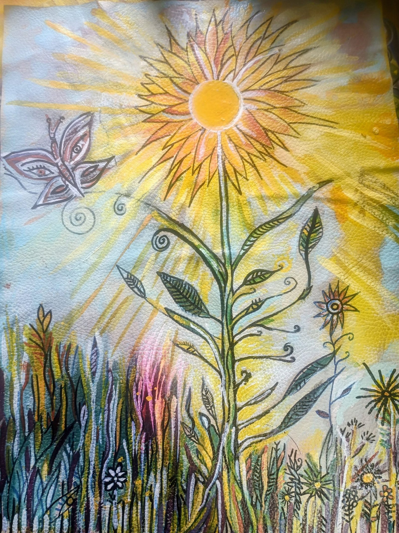 pintura Flor con Mariposa🦋☀️